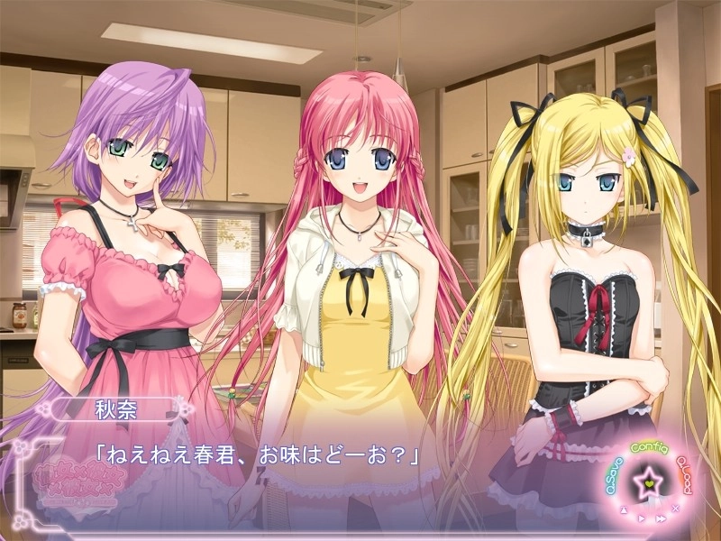 《彼女×彼女×彼女 〜三姉妹とのドキドキ共同生活〜》常见译名有《彼女×彼女×彼女~与三姊妹的心跳共同生活~》与《女友×女友×女友》,于2008年5月30日发售,由ωstar开发、发行,核心主创可确认包括负责原画与企画的八宝備仁,以及参与剧本与主题歌作词的猫コスメ。
