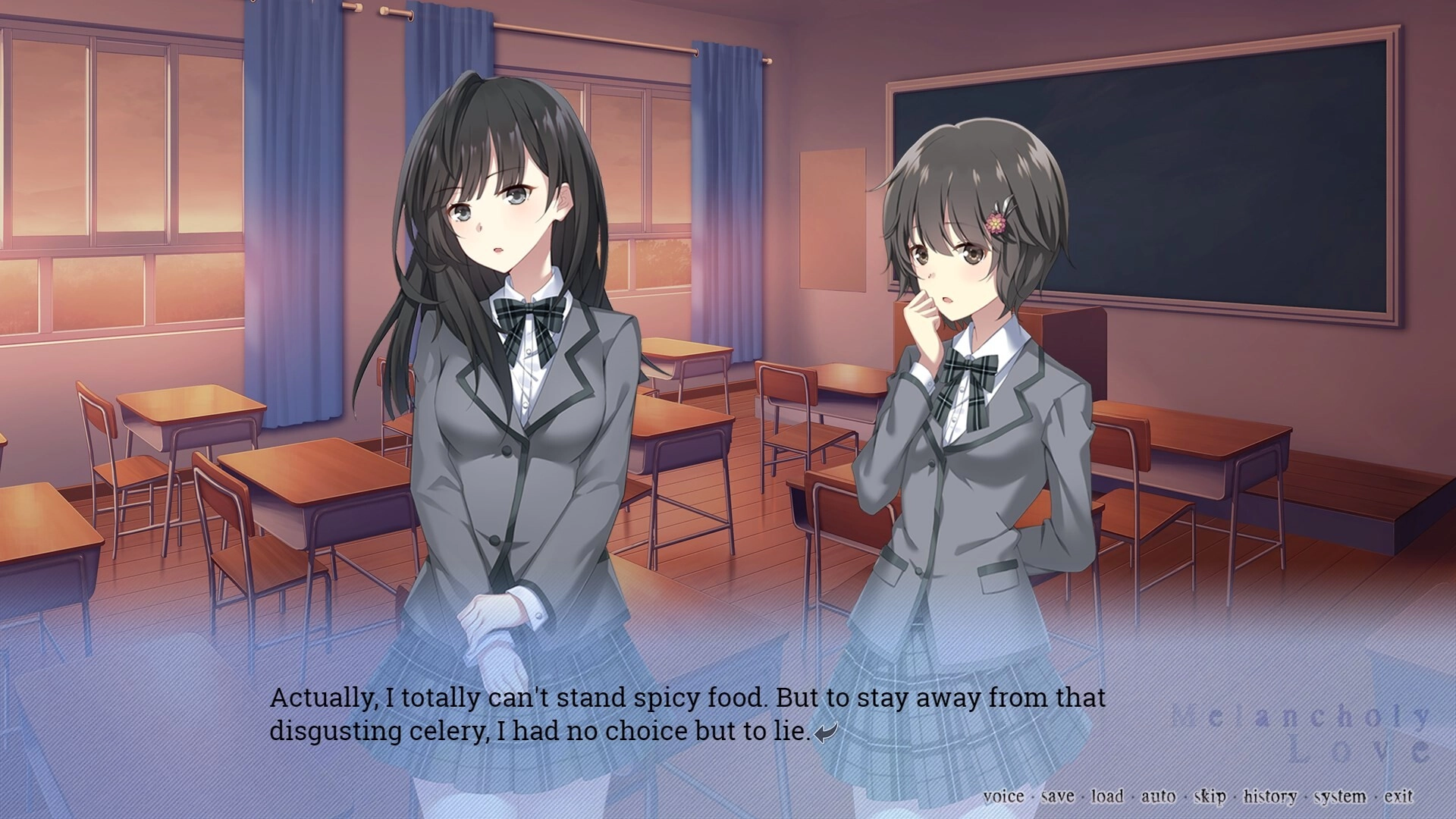《忧郁之恋》是一部设定在私立女子学院的成长系百合视觉小说。这是一段浪漫之旅,讲述了一位出身优渥的精英学生与渴望挣脱学院束缚的不良少女之间的故事。