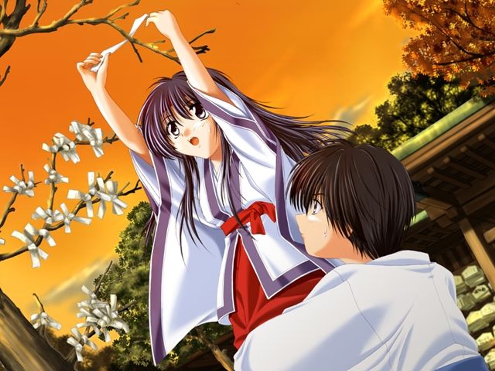 作为母亲替代般存在的天满小梅、天满神社的姬巫女天满雪乃、以及作为阴阳师并担任搭档的天满真梨——在三位美丽的巫女之间,武怀抱虚无度过着无尽的日常,只是装作在笑而已。